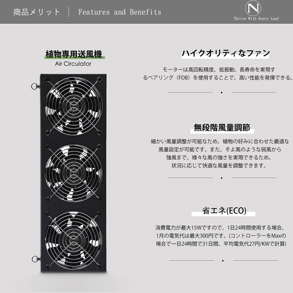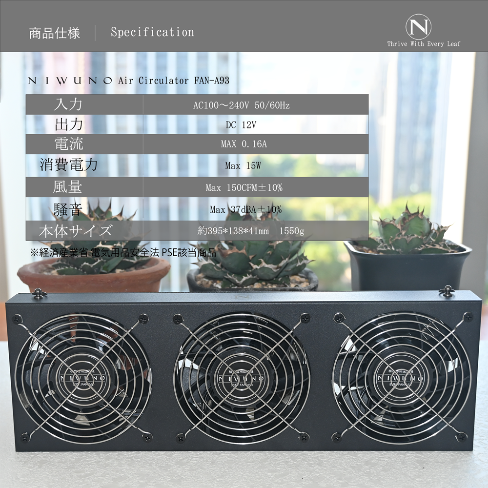 Niwuno オリジナル 植物専用送風機 ファン 換気扇 温度調節 無段階調速 植物用サーキュレーター FAN-A93-MAX 15W